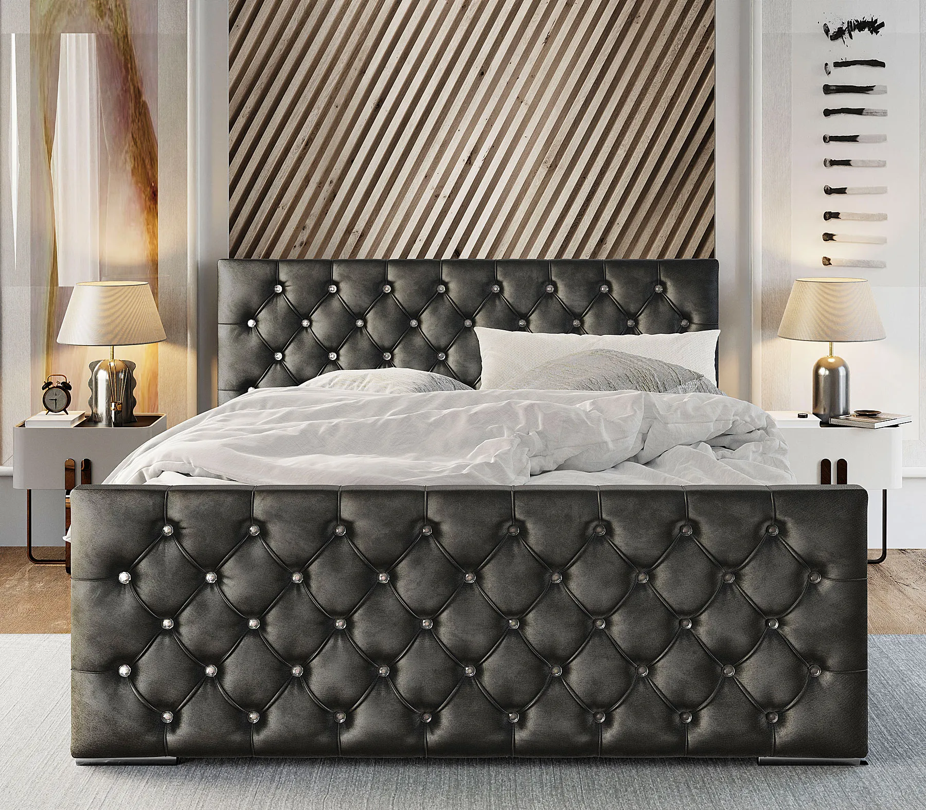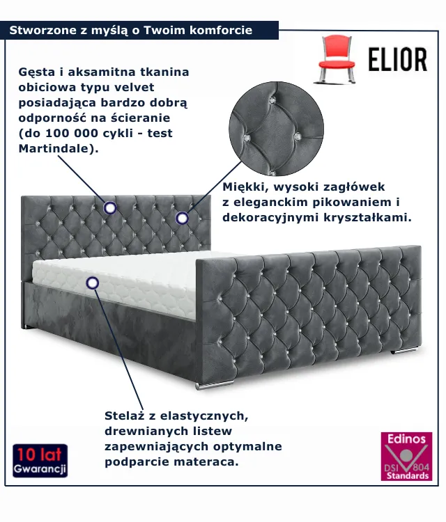 Dotyczy: Czarne welurowe łóżko z pikowaniem 5 rozmiarów - Valmiro