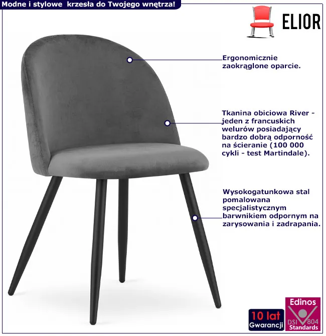 Dotyczy: Czarne metalowe krzesło welurowe - Amvo