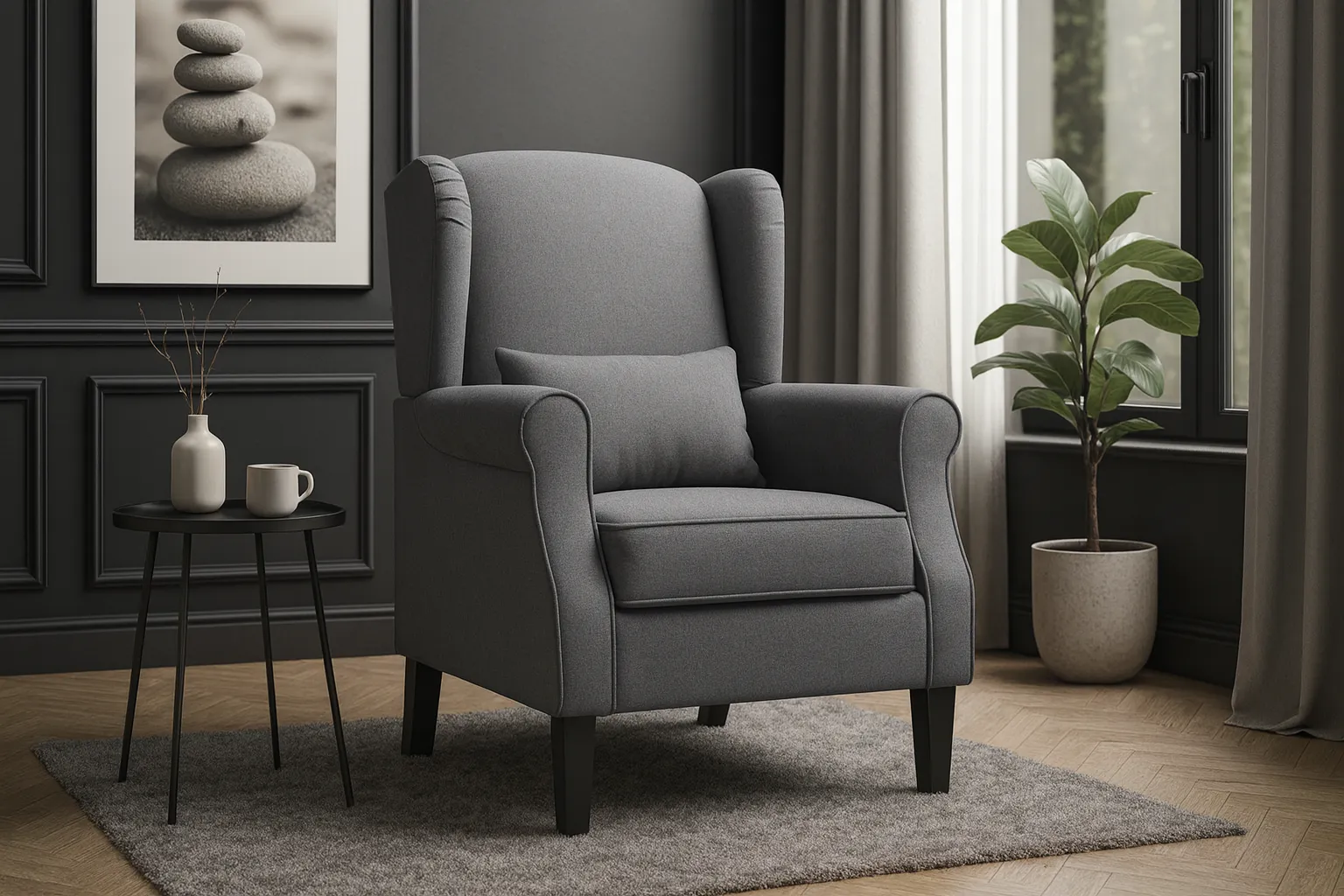 - Modny kolor: ciemnoszary. Kliknij w link i sprawdź także inne fotele uszaki w sklepie Edinos.pl. Stwórz swój praktyczny zestaw mebli.