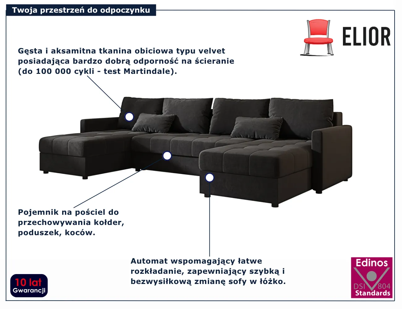 • Wypełnienie z pianki elastycznej - gwarantuje sprężystość, komfort i trwałość nawet przy intensywnym użytkowaniu.