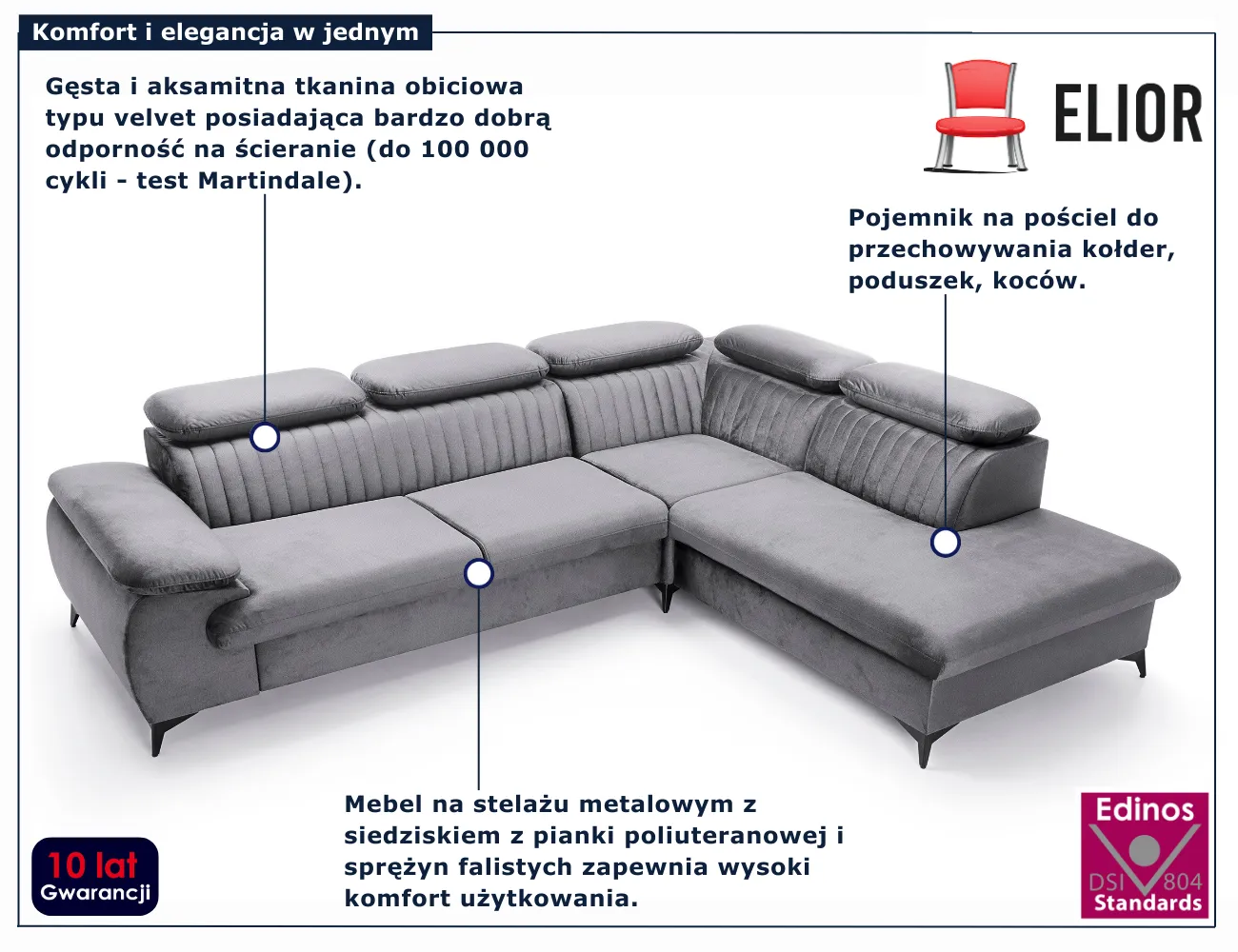 Dotyczy: Brązowy narożnik rozkładany z pojemnikiem - Revioni 3X