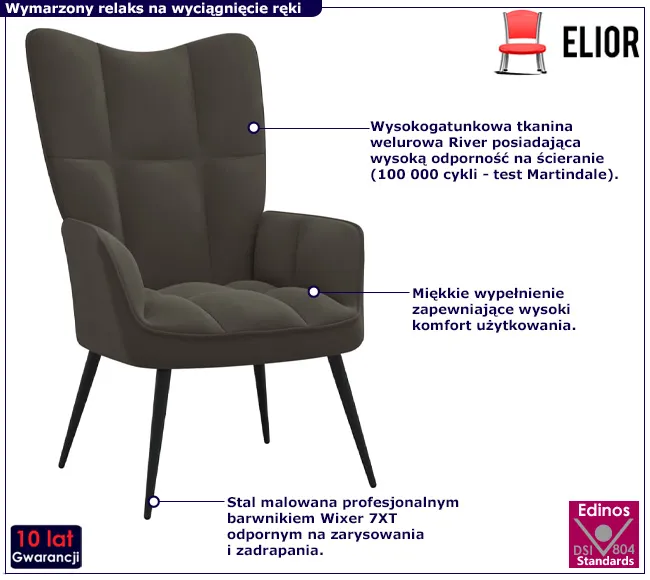 - Prosty, a zarazem wyrafinowany design fotela doskonale wpisuje się w nowoczesne aranżacje salonu lub sypialni.