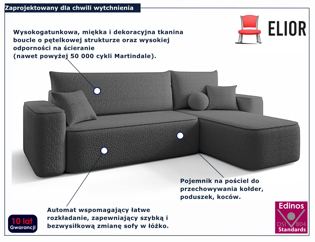 Dotyczy: Czarny narożnik z pojemnikiem na pościel - Mossira 4X