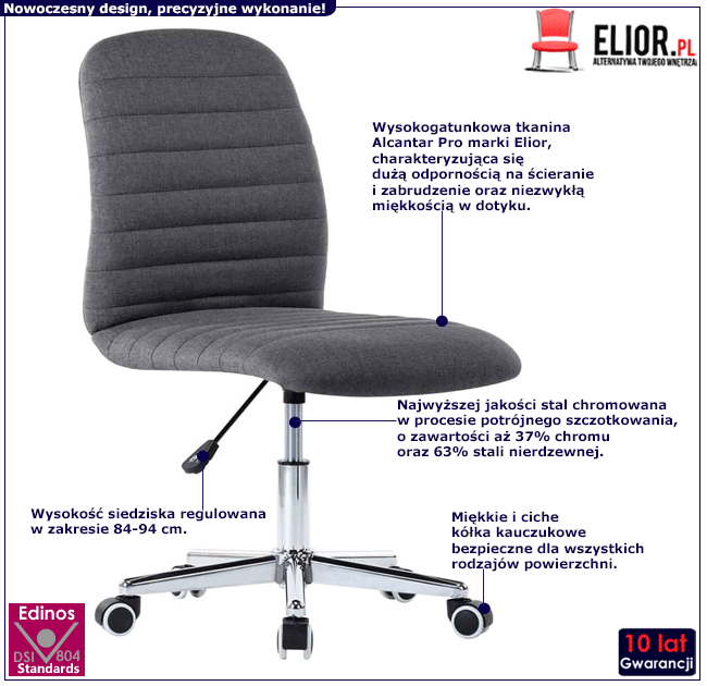Dotyczy: Jasnoszary tapicerowany fotel obrotowy - Mivos