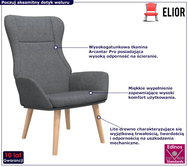 - Fotel ten, dodaje salonowi niepowtarzalnego stylu i zapewnia wyjątkowy komfort podczas odpoczynku.