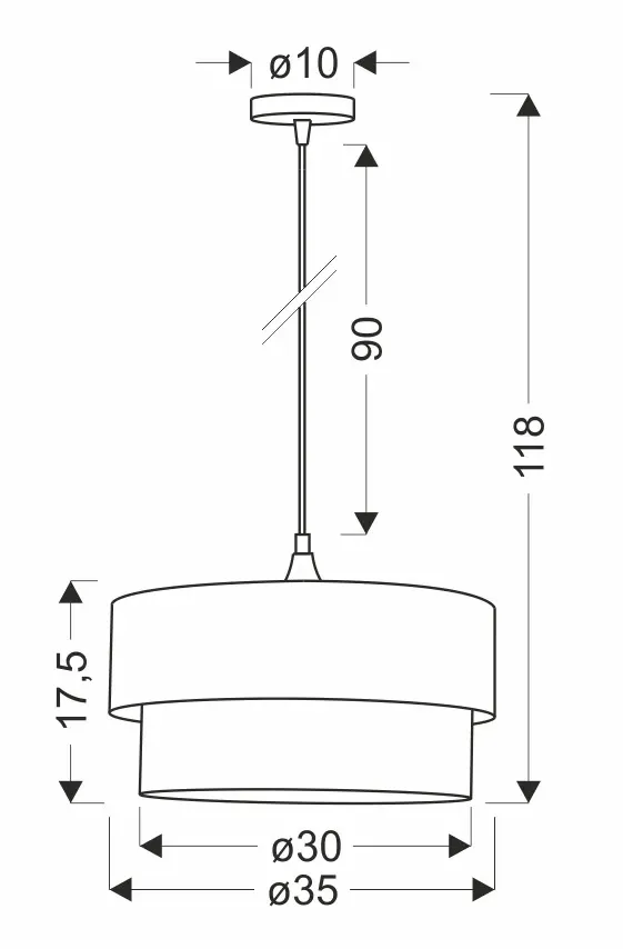Materiał: zawiesie stalowe, abażur tkanina +PCV