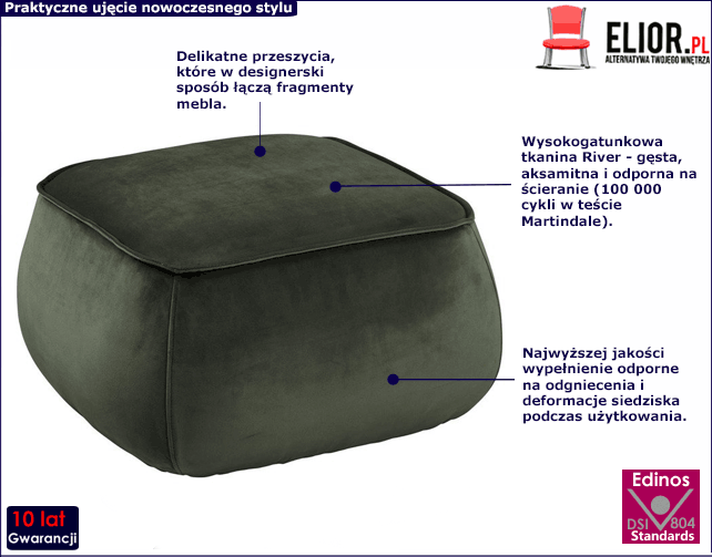 • Modna kolorystyka: ciemnozielony. Kliknij w link i sprawdź także inne pufy w sklepie Edinos.pl. Stwórz swój praktyczny zestaw mebli.