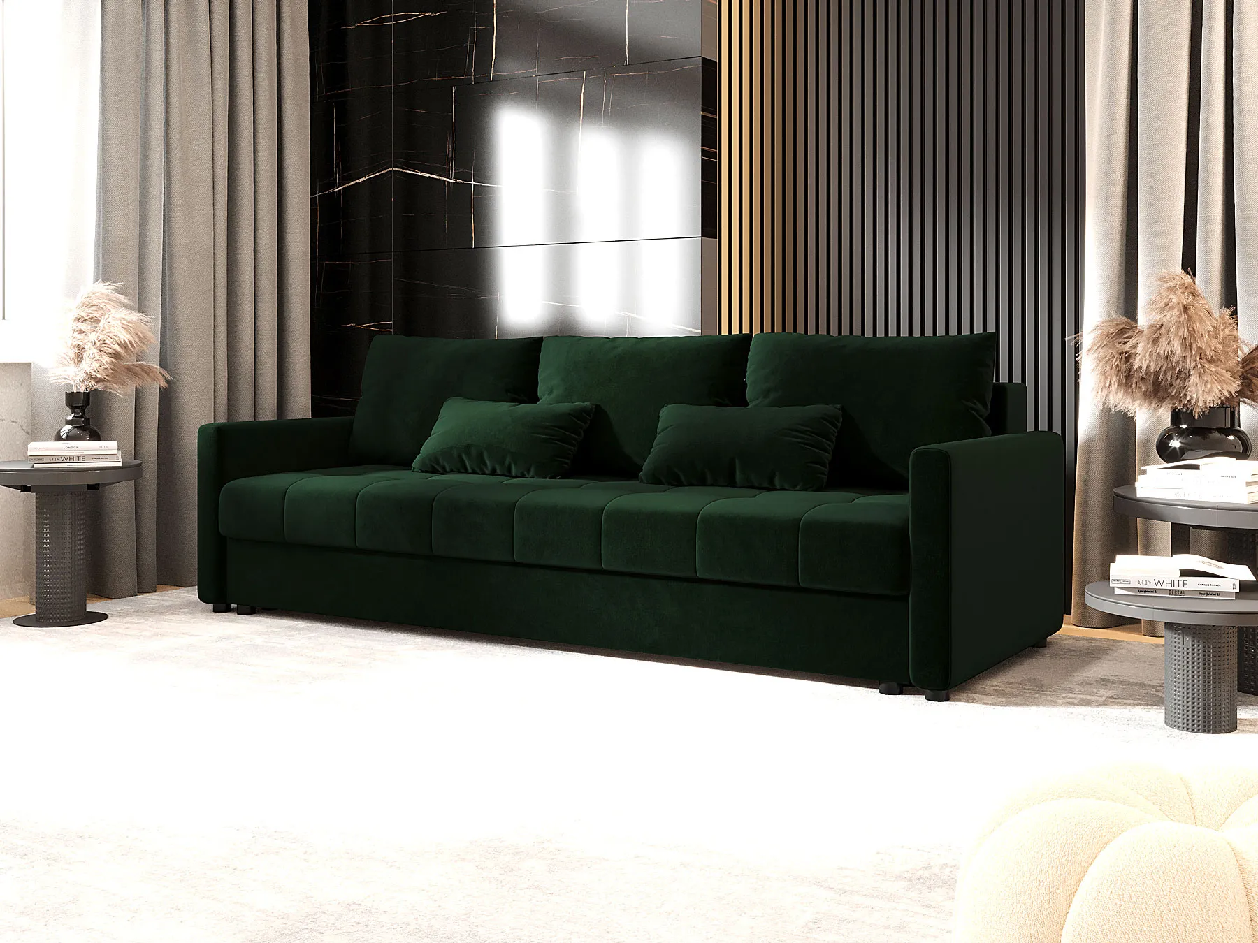 Ciemnozielona welurowa sofa rozkładana z pojemnikiem - Vilmira
