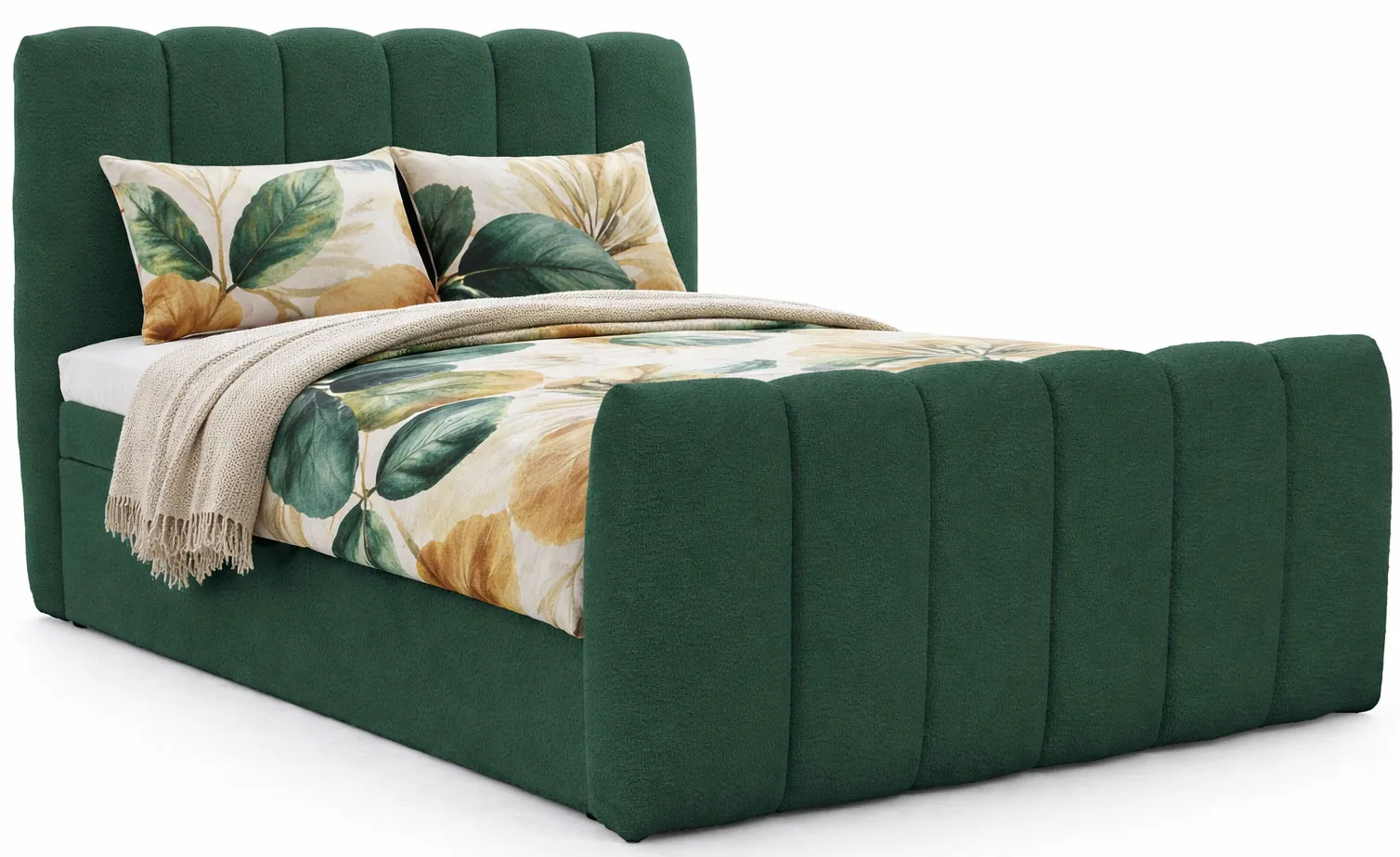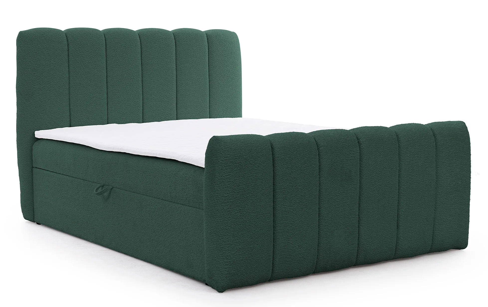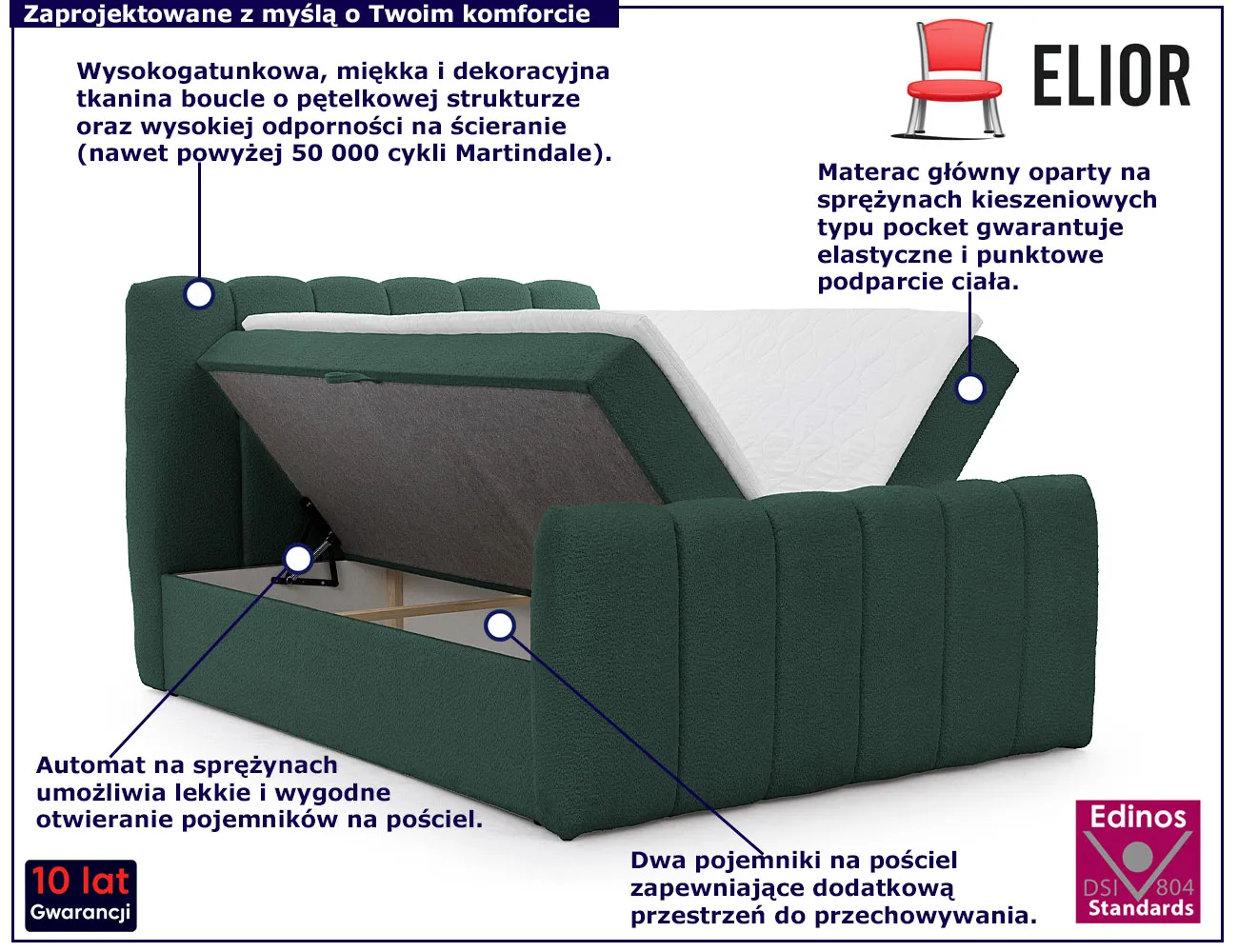 Ciemnozielone łóżko kontynentalne tapicerowane boucle - Cloud