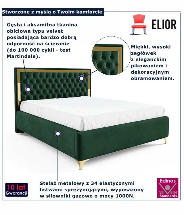 Dotyczy: Szare łóżko tapicerowane z pikowanym zagłówkiem - Mardano 4X