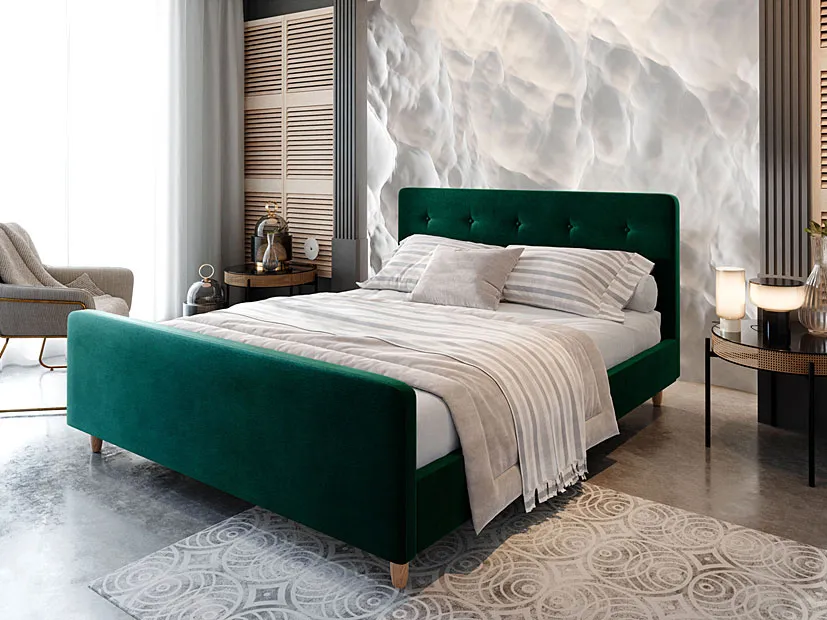 Ciemnozielone nowoczesne łóżko z pojemnikiem 5 rozmiarów - Montivio