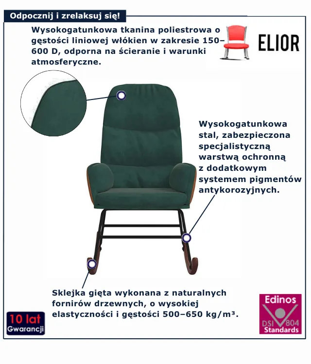 Dotyczy: Brązowy tapicerowany fotel bujany na płozach - Ulli