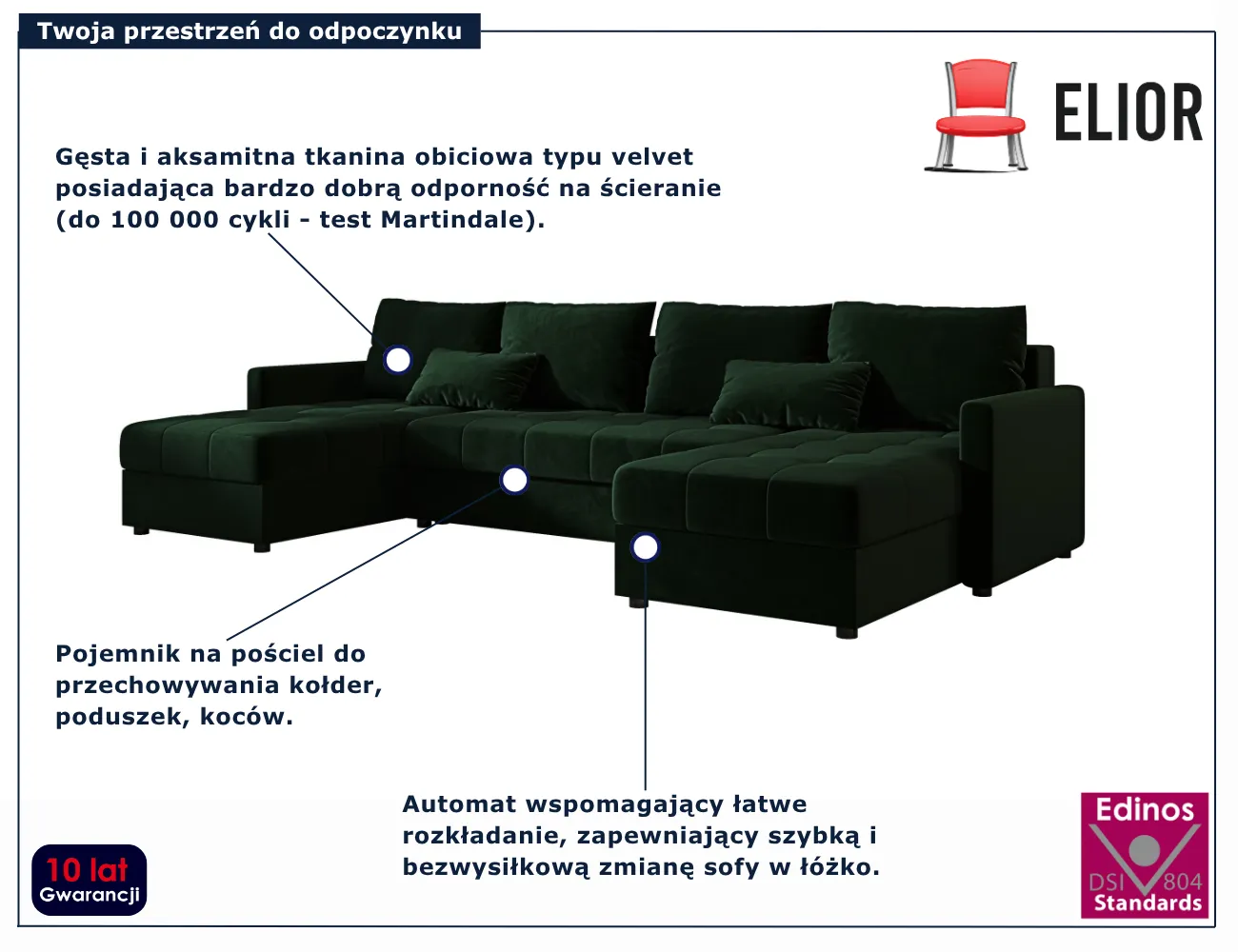 Nowoczesny ciemnozielony narożnik w literę U Ferrano 4X