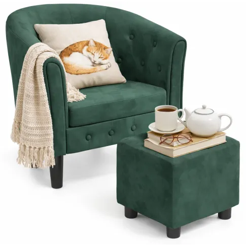 Ciemnozielony welurowy fotel z podnóżkiem - Cypria