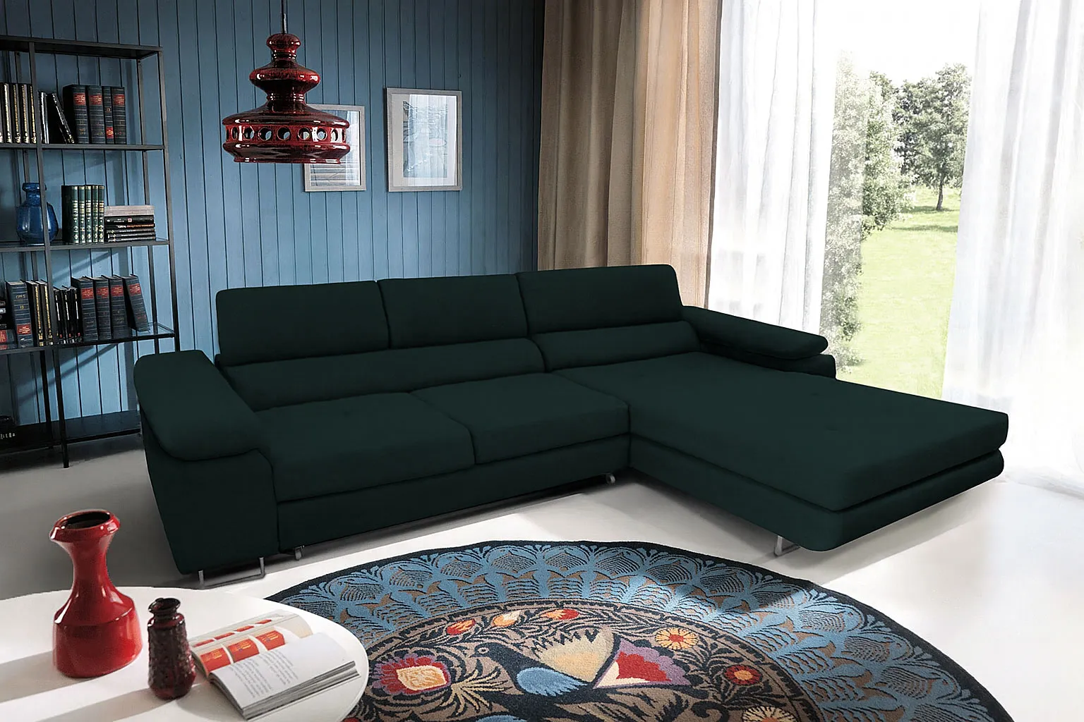 Dotyczy: Narożnik rozkładany z funkcją spania w kolorze morskim - Grenvo