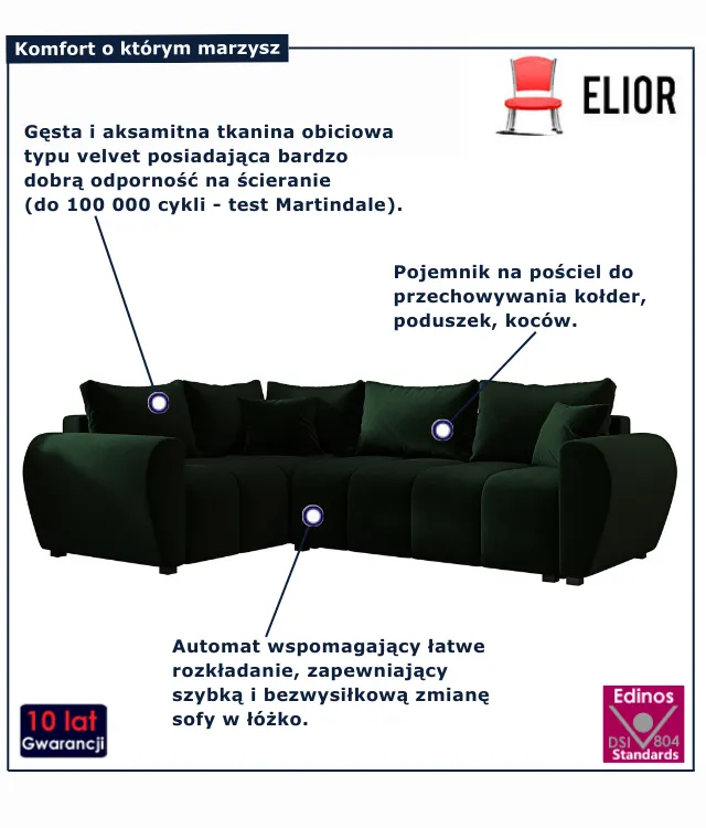 • Solidna konstrukcja – trwałe materiały i staranne wykonanie gwarantują, że narożnik posłuży przez wiele lat.