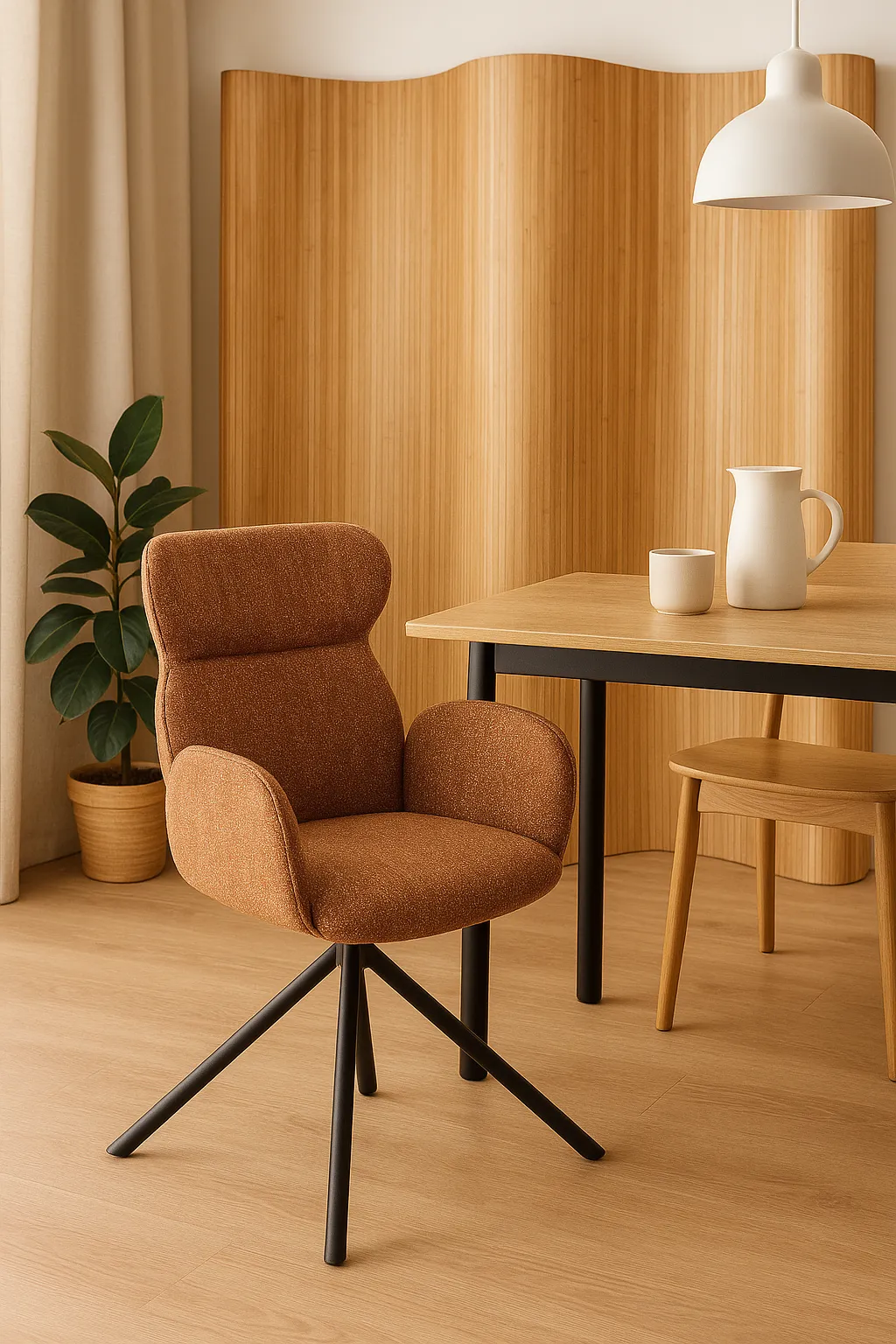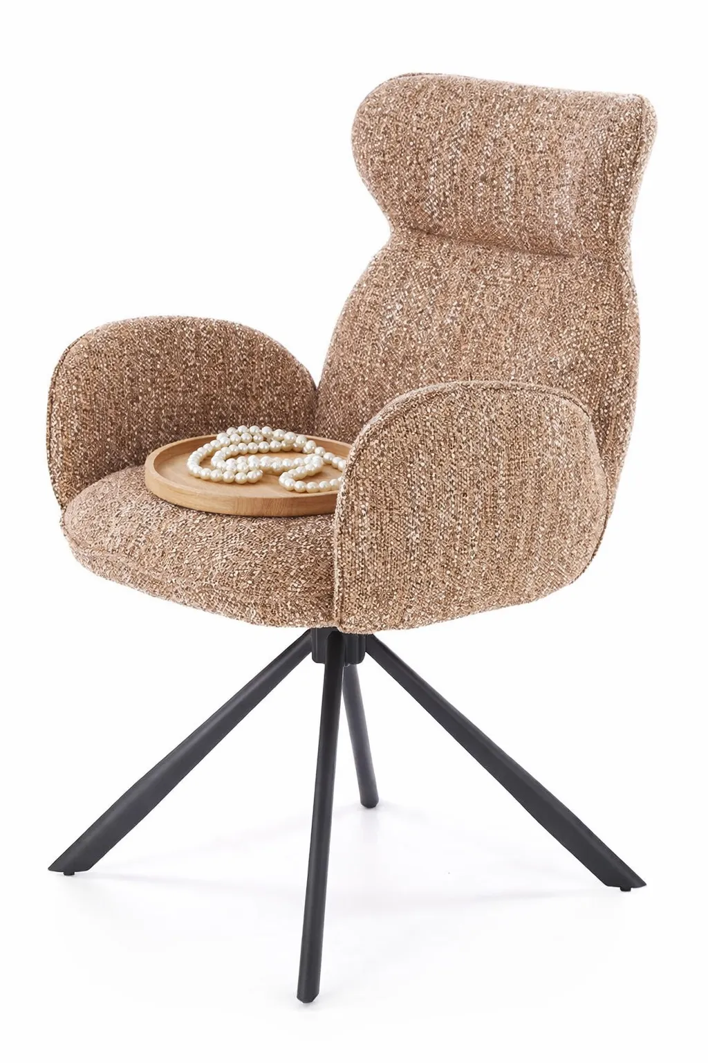 Dotyczy: Beżowe tapicerowane krzesło z podłokietnikami - Janpa