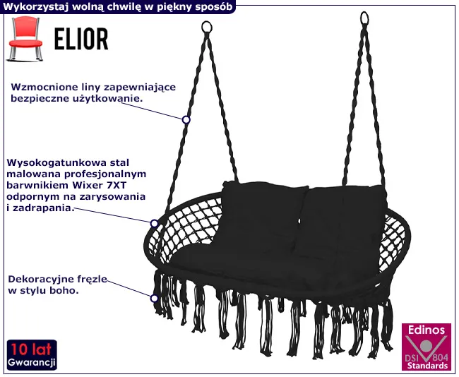Czarna huśtawka w stylu boho Stelli 3X