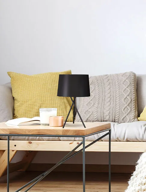 Czarna lampa stołowa z abażurem trónóg S913-Sorgus