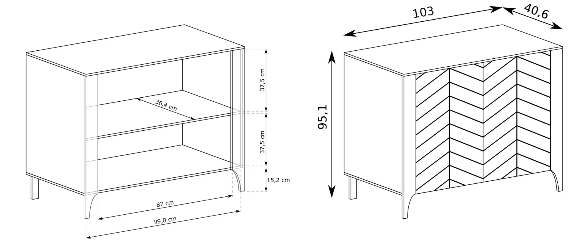 • szerokość 103 cm, wysokość 95 cm, głębokość 40,5 cm