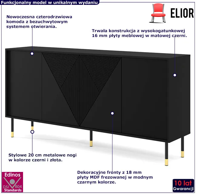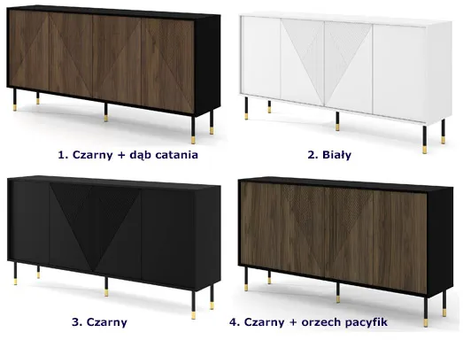 Dotyczy: Komoda z frezowanym frontem czarny + dąb catania - Nadia 3X