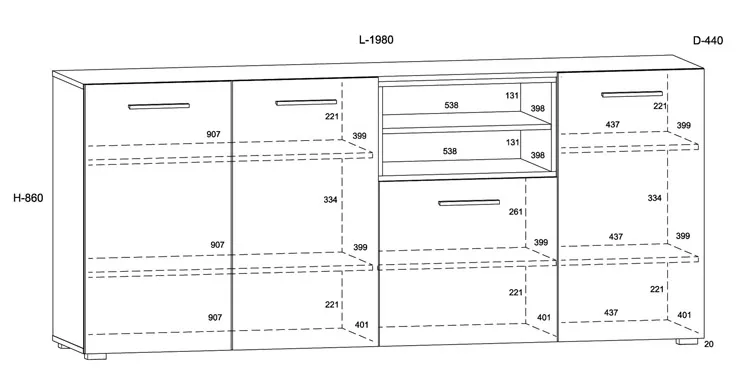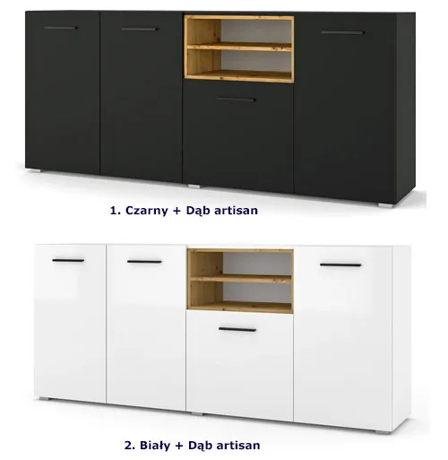 Dotyczy: Długa komoda do salonu 200 cm biały połysk - Lenifo 6X