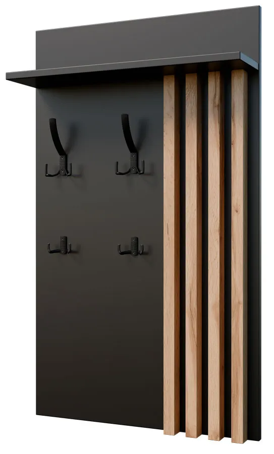 Czarny wieszak z półką zdobiony lamelami do przedpokoju Crizzo