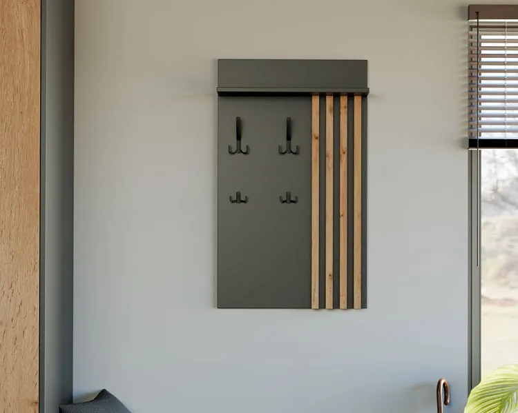 Czarna lamelowa półka z wieszakami do przedpokoju - Crizzo