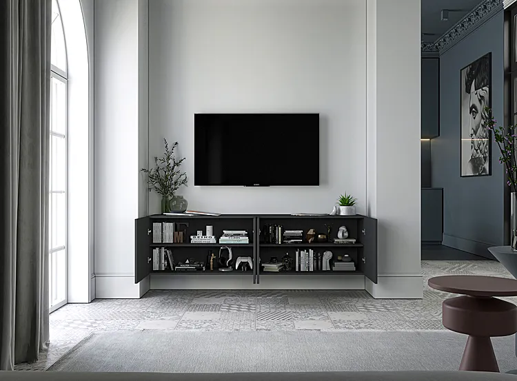Dotyczy: Biała ścienna szafka rtv z lamelami - Filo 6X
