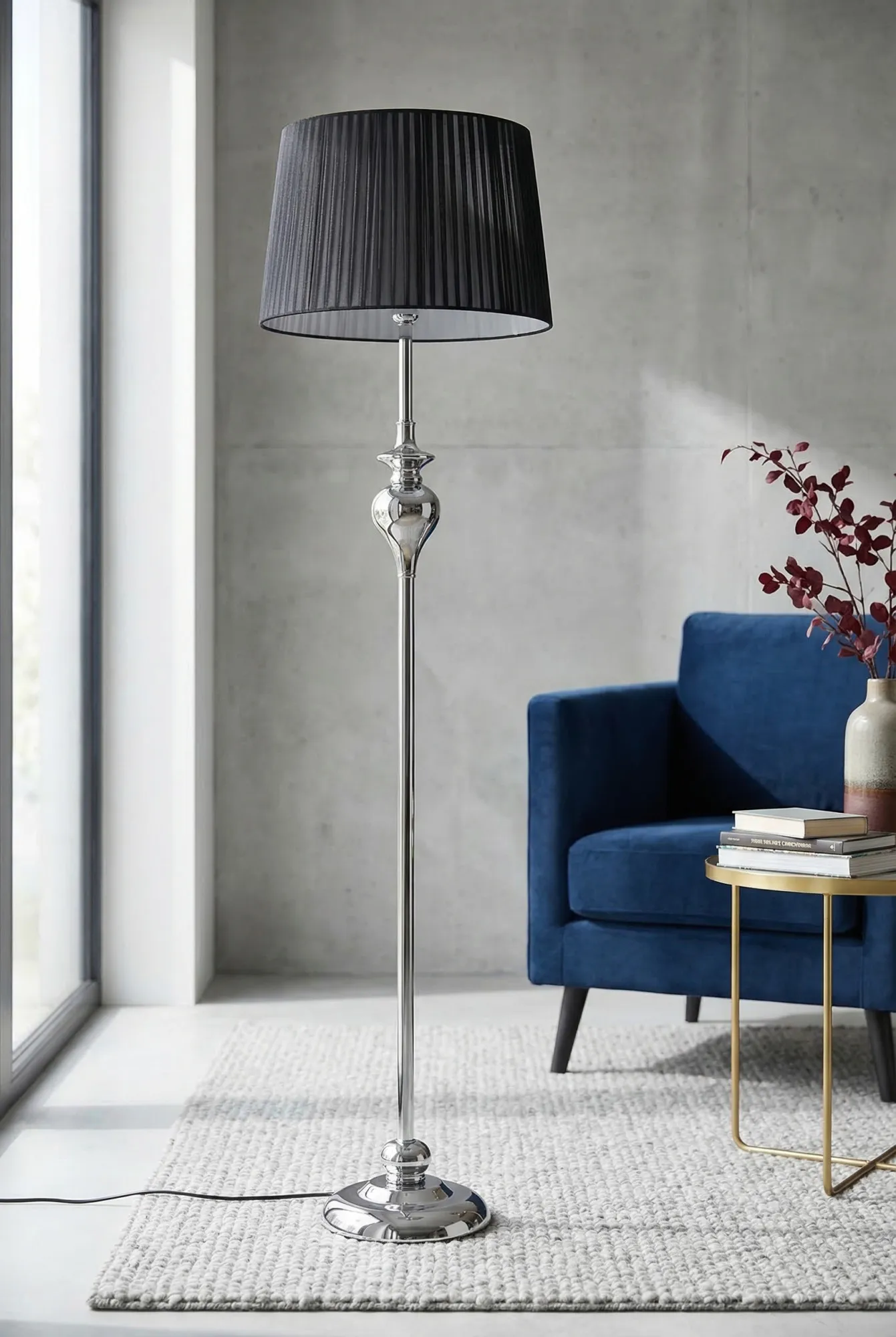 Dotyczy: Srebrna lampa stojąca z nitkowym abażurem - V165-Rotom