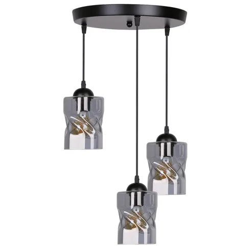 Czarna lampa wisząca do salonu z 3 kloszami ze szkła dymionego - Z026-Vido
