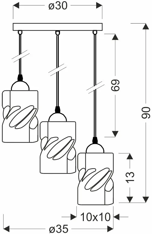 Źródło światła: 3xE27, 230V/ 50Hz, Moc 60 W