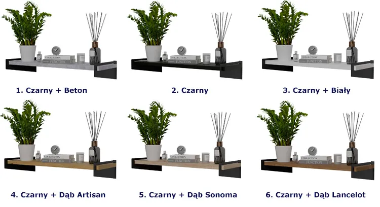 Dotyczy: Ścienna półka na książki w stylu loft czarny + dąb artisan - Mizu 4X