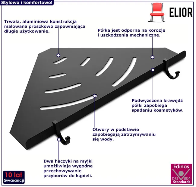 Przestań zmagać się z chaosem podczas kąpieli dzięki nowoczesnej półce pod prysznic Atina! Ta wyjątkowa półka jest idealnym rozwiązaniem dla osób, które cenią sobie porządek i estetykę w swojej łazience. Wykonana z najwyższej jakości aluminium posłuży Ci swoją funkcjonalnością przez lata. Poznaj nowy produkt marki Edinos Premium!