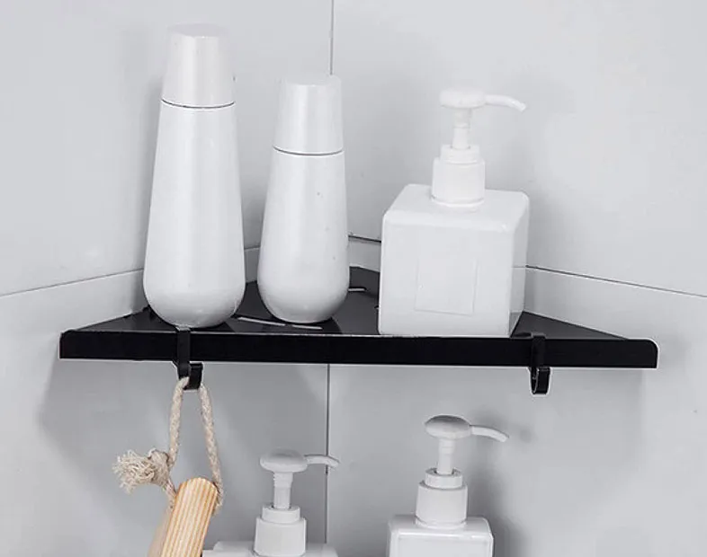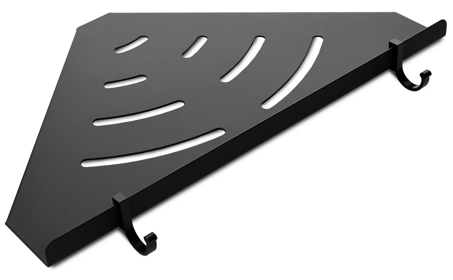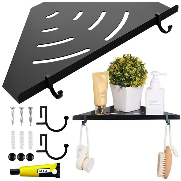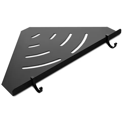 Czarna narożna półka prysznicowa z haczykami - Atina