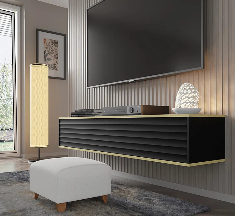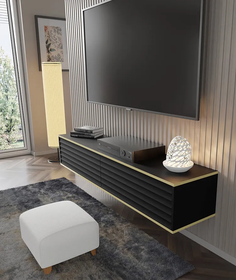 Dotyczy: Biała ścienna frezowana szafka pod TV - Vanilia 4X