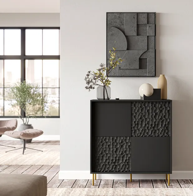 Czarna nowoczesna komoda z frontami 3D - Juppi 4X