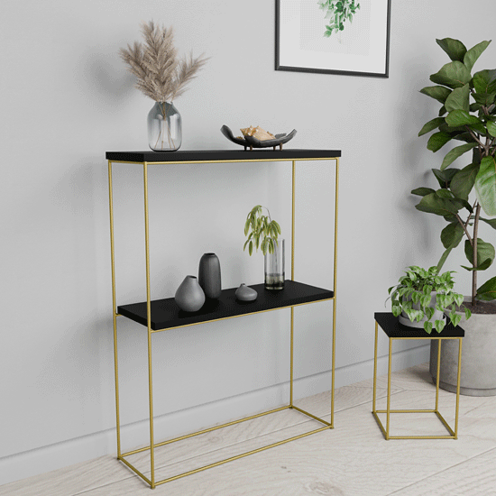 Dotyczy: Klasyczna konsola do przedpokoju dąb sonoma + złoty - Blox 5X