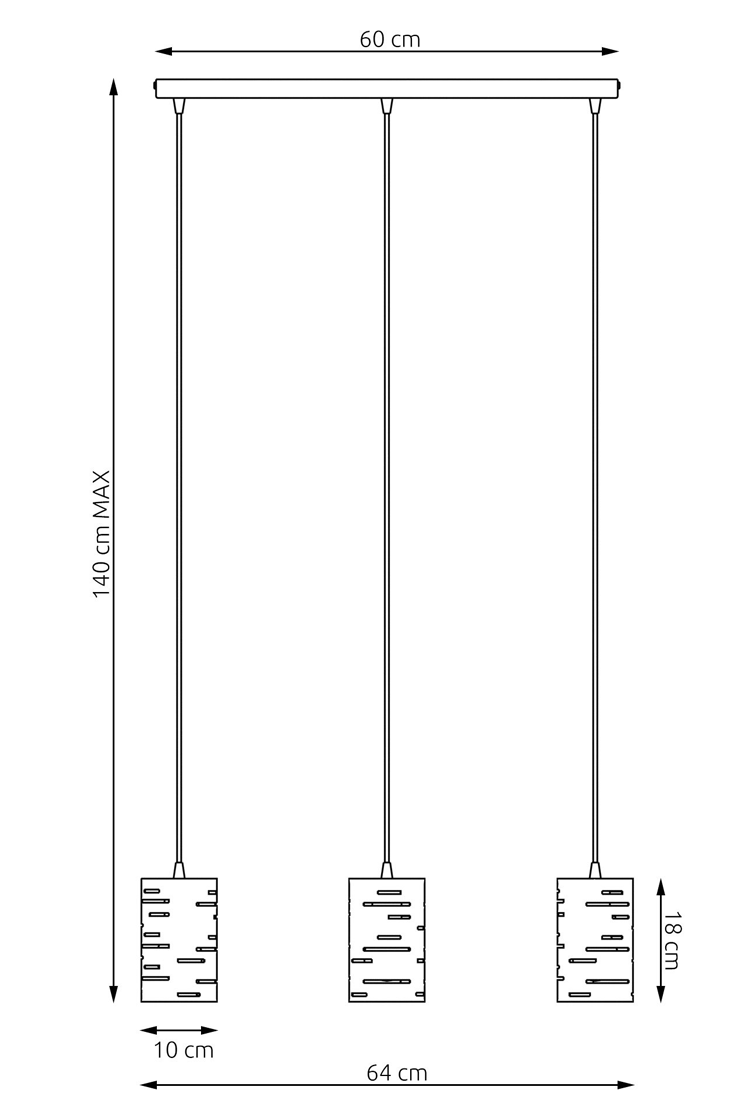 Wisząca lampa w kształcie tuby to ciekawa propozycja idealna do nowoczesnych wnętrz. Metalowa konstrukcja z poziomymi nacięciami dodaje lampie charakteru i przepuszcza większą ilość światła. Dekoracyjne wzory na kloszu czynią ją stylowym dodatkiem, zwłaszcza w jadalni, kuchni lub salonie. Wisząca nad wyspą kuchenną, efektownie doświetla przestrzeń roboczą. Seria TANK współgra z minimalistycznymi wnętrzami oraz stylem industrialnym i loftowym. Dostępna w wersji na 1, 3, 4, 6 lub 9 źródeł światła - możesz wybrać wariant odpowiedni dla swoich potrzeb.