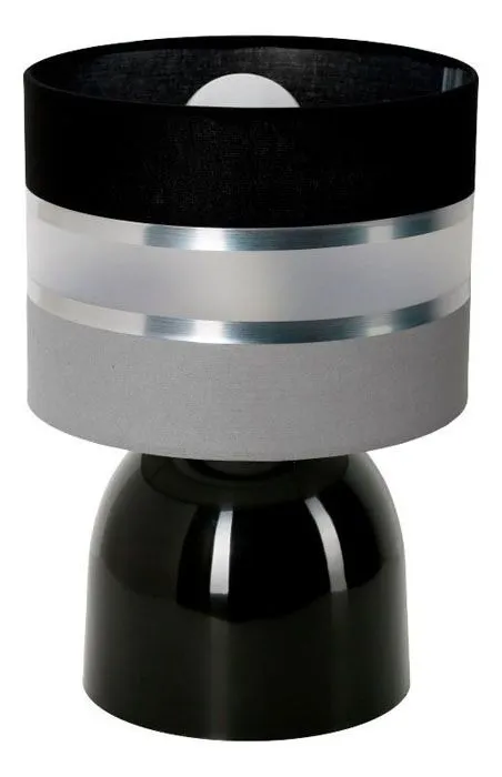 Ta mała lampka cechuje się wysoką estetyką oraz funkcjonalnością. Prosty a zarazem zachwycający abażur wyróżnia się stonowaną, neutralną kolorystyką, którą ożywiają srebrne paseczki. Czarna, wyjątkowa forma podstawy sprawia, że lampa prezentuje się niezwykle efektownie i elegancko. Jest to niezbędny element w każdym mieszkaniu bądź domu. Lampka będzie doskonałym rozwiązaniem nie tylko na stół w jadalni, czy stolik w salonie ale również na szafkę nocną w sypialni, biurko czy też komodę. Emitowane z niej światło zadba o przyjemną aurę, dzięki której będziemy mogli wypocząć po ciężkim dniu lub zrelaksować się przy ulubionej książce. Jest to stylowy model oświetleniowy, który nada przestrzeni szyku oraz przytulnego klimatu. Lampka idealnie wpisze się w każdy styl wnętrza, od nowoczesnego po klasyczny. Produkt został wykonany z materiałów  najwyższej jakości, dzięki czemu będzie można cieszyć się jego wyglądem i funkcjonalnością przez wiele lat.