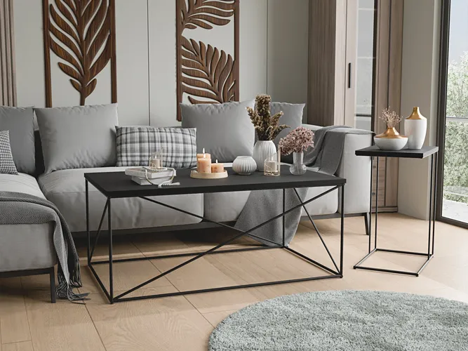 Dotyczy: Industrialny stolik kawowy z czarnym stelażem czarny + dąb artisan - Cordani 4X