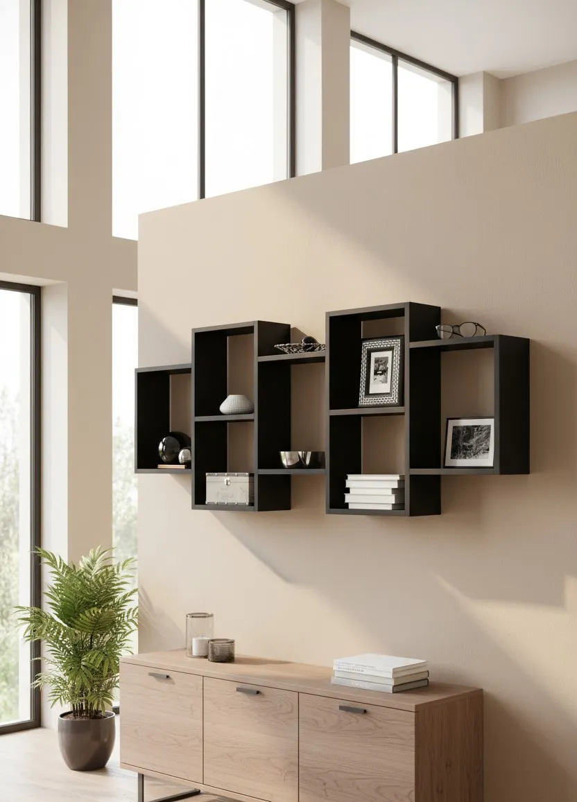 - Salon: półka na książki, płyty, artykuły dekoracyjne;