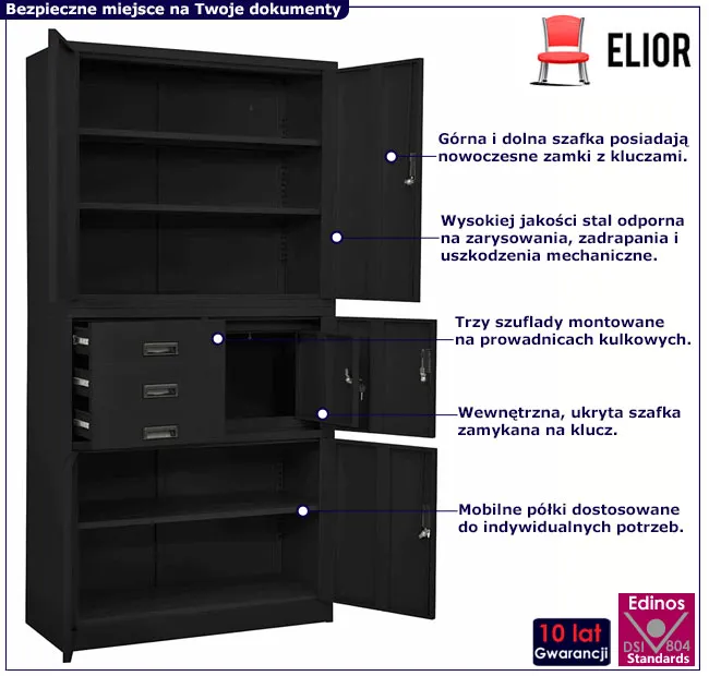 Dotyczy: Antracytowa zamykana szafa do biura - Onyx