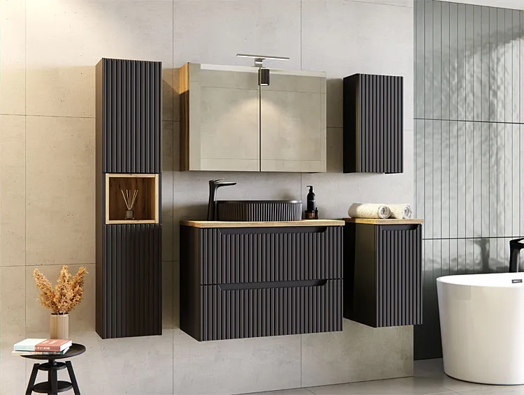 Dotyczy: Biała ryflowana górna szafka łazienkowa - Dafo 5X