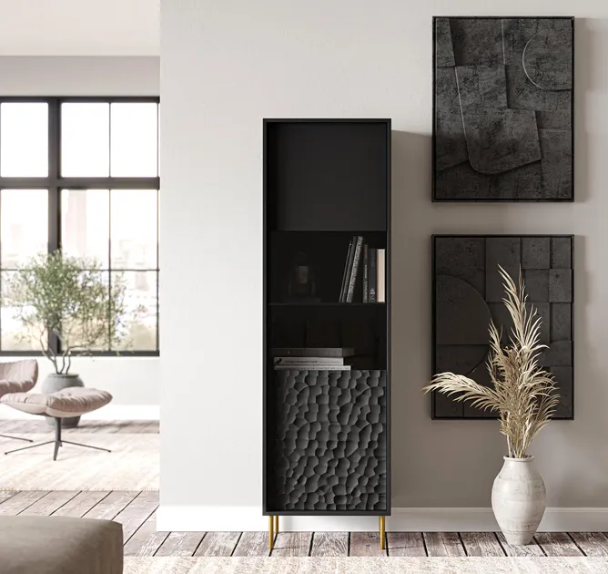 Czarna nowoczesna witryna z frontami 3D - Juppi 5X