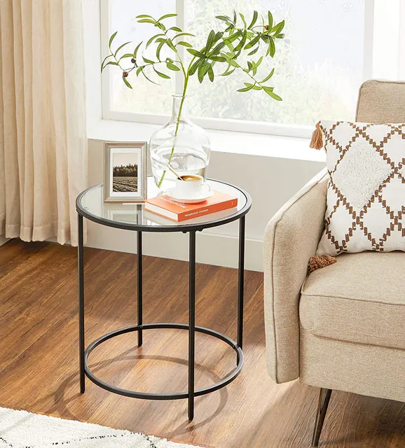 Dotyczy: Okrągły złoty stolik kawowy ze szklanym blatem - Driada