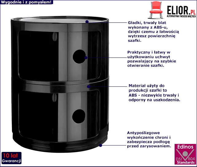 • Kolor: czarny. Kliknij w link sprawdź także inne szafki nocne w kolorze czarnym w sklepie Edinos.pl. Stwórz swój praktyczny zestaw mebli.