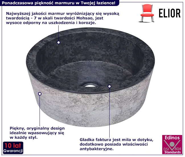 Dotyczy: Szara nablatowa umywalka z marmuru - Belis