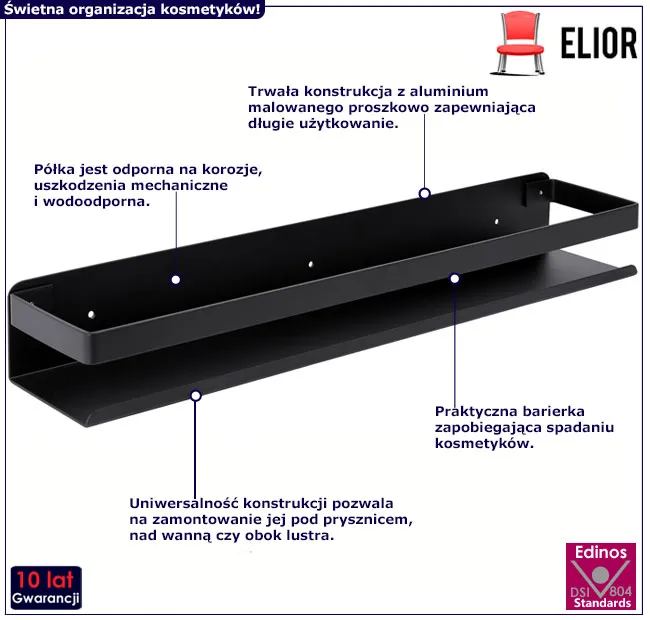 Dotyczy: Aluminiowa czarna półka łazienkowa 30 cm - Derix