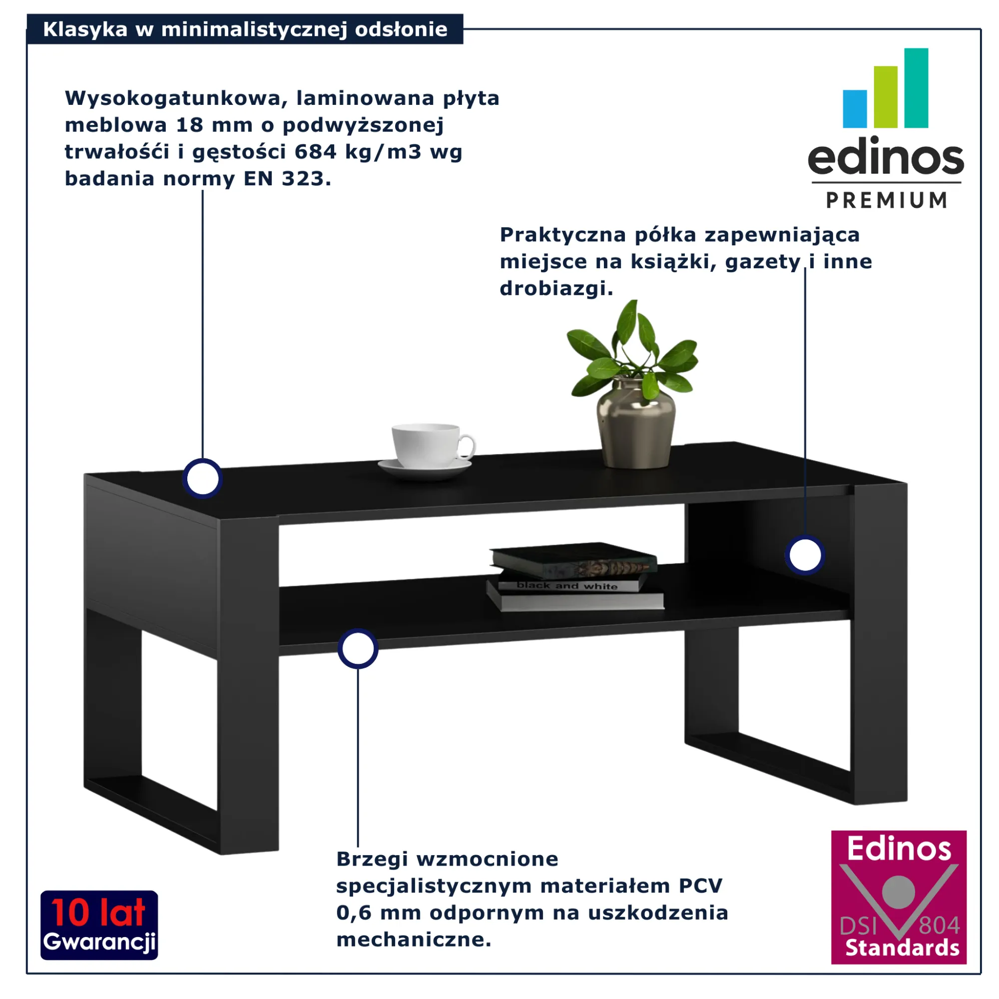 Dotyczy: Prostokątna ława z półką dąb wotan + czarny - Bracio 3X